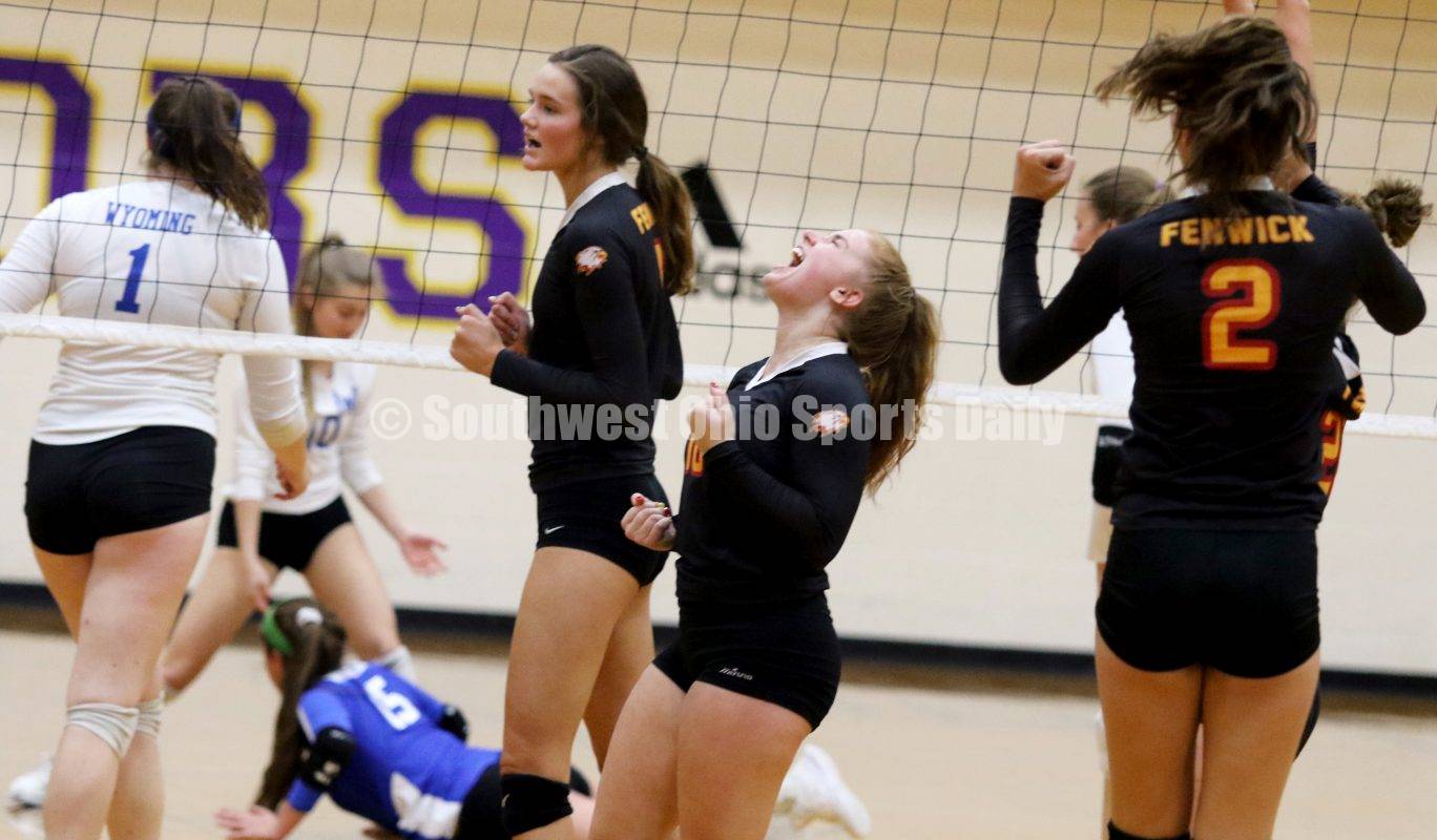 Conley’s top-ranked Fenwick High School volleyball team is one win away from returning to the Division II state tournament after sweeping Wyoming 25-23, 25-13, 25-22 in a regional semifinal Thursday night at Vandalia Butler’s Student
