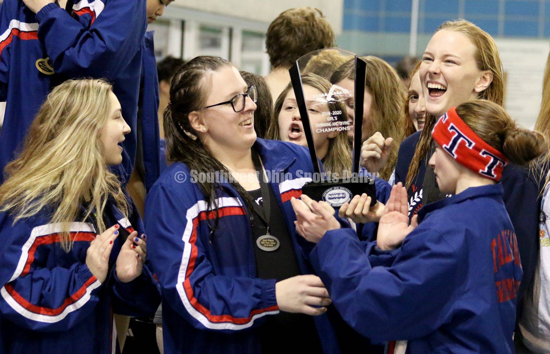 Talawanda High School’s coach colored his hair red for the Southwest Ohio Conference Swimming & Diving Championship and his crew responded by continuing to dominate the