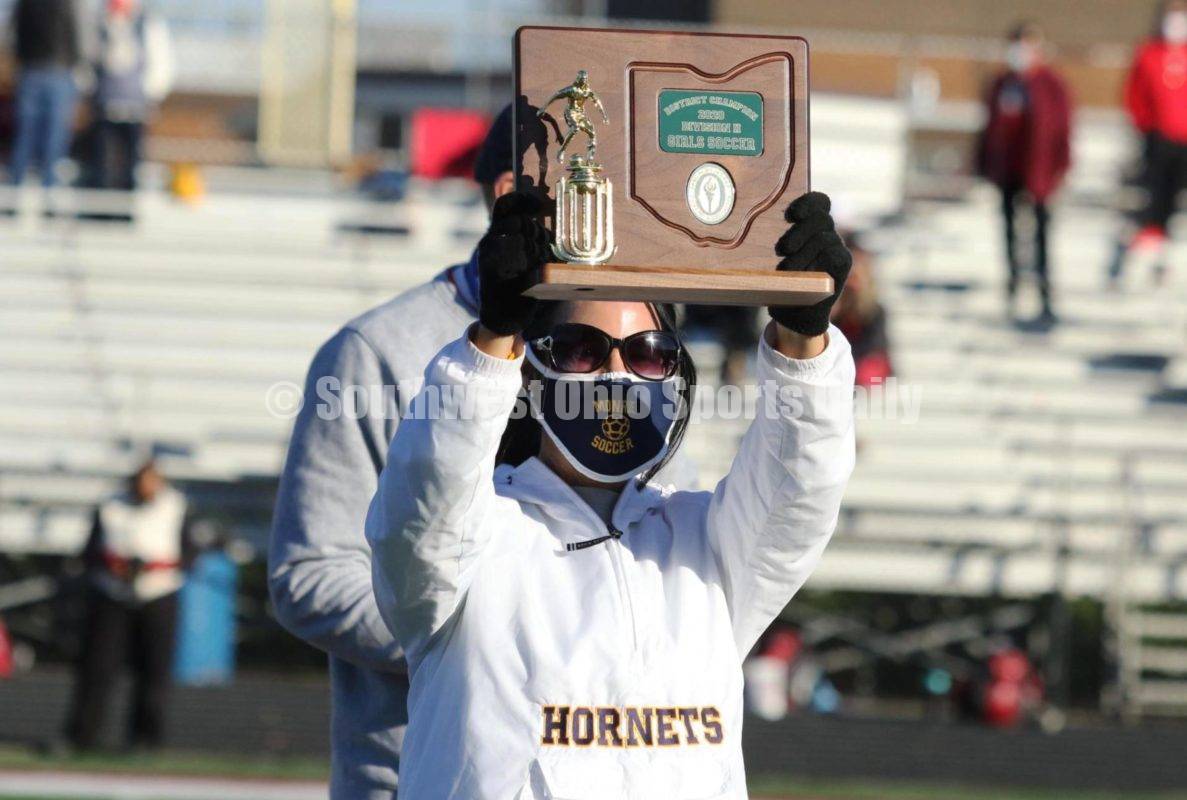 LEBANON — Monroe High School’s girls soccer team claimed its second straight Division II district championship Saturday afternoon with a 2-0 victory over Indian Hill at Lebanon’s Jim VanDeGrift Stadium.