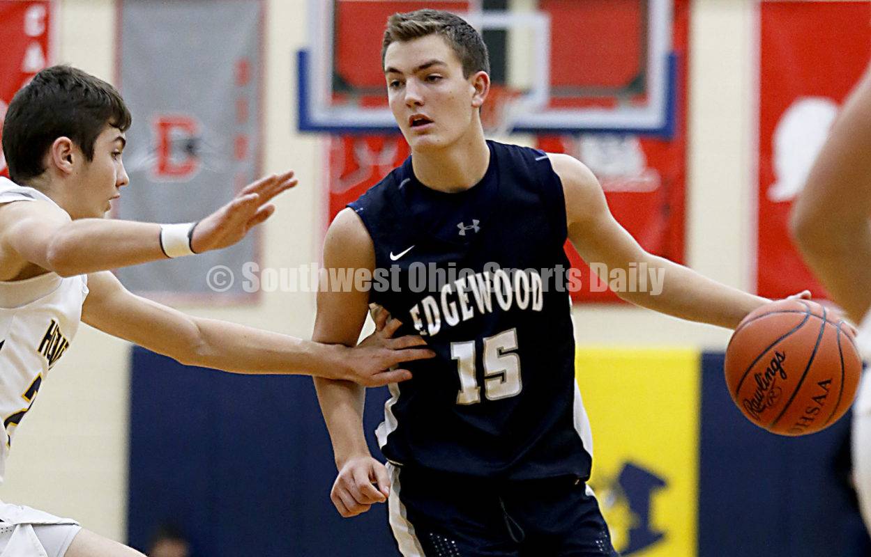 Monroe High School guard/forward Adam Ploeger covers Edgewood guard Caleb Allen during a Butler County boys basketball game at Monroe on Dec. 1, 2020. Edgewood won 77-72 in double overtime. E.L. HUBBARD/CONTRIBUTOR