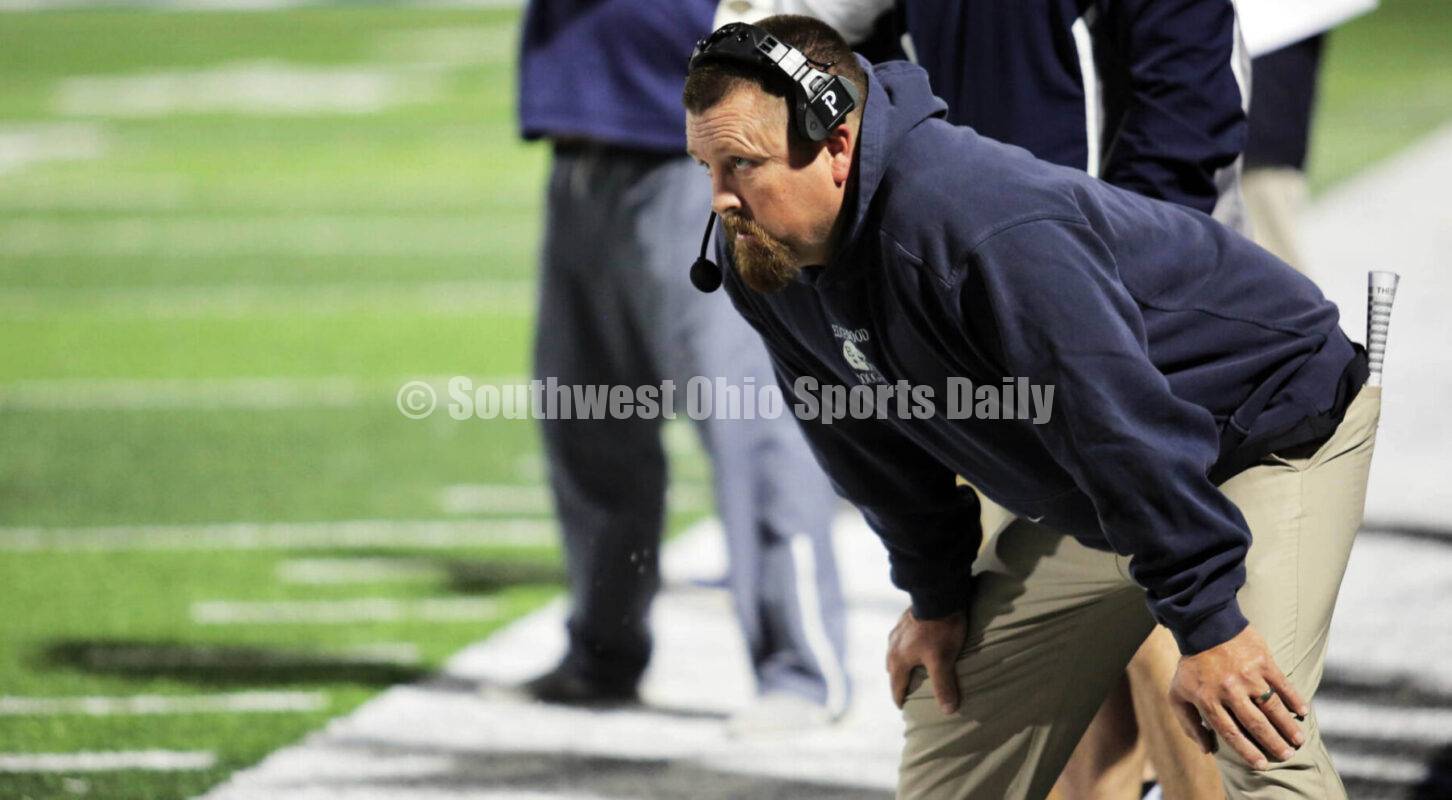 Edgewood High School coach Scott Clemmons watches from the sideline Oct. 21, 2022, during a Southwest Ohio Conference football game against Harrison at Edgewood. The host Cougars won 47-7. RICK CASSANO/STAFF