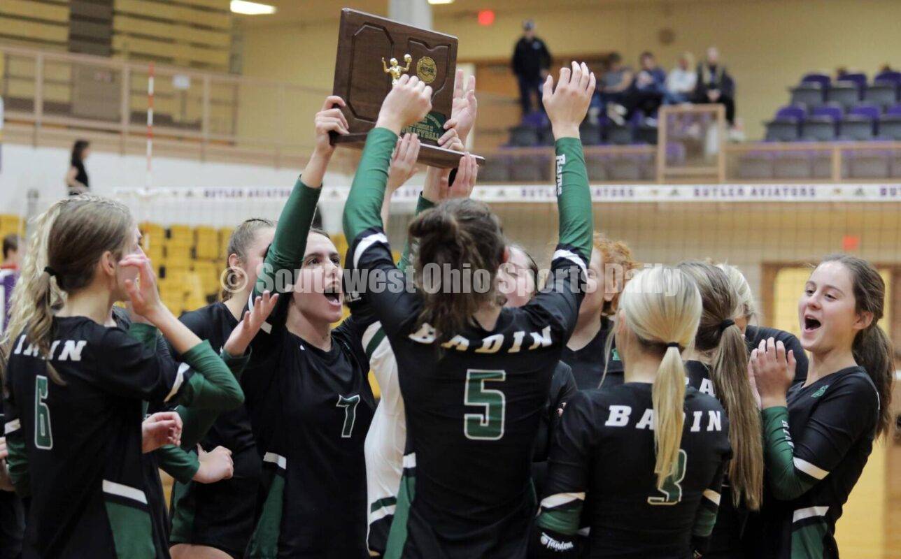 Badin High School’s girls volleyball team is headed to the Division II state tournament for the first time after celebrating its initial regional championship Saturday with an 18-25, 25-23, 25-19, 25-22 victory over longtime rival Roger Bacon at Vandalia Butler.