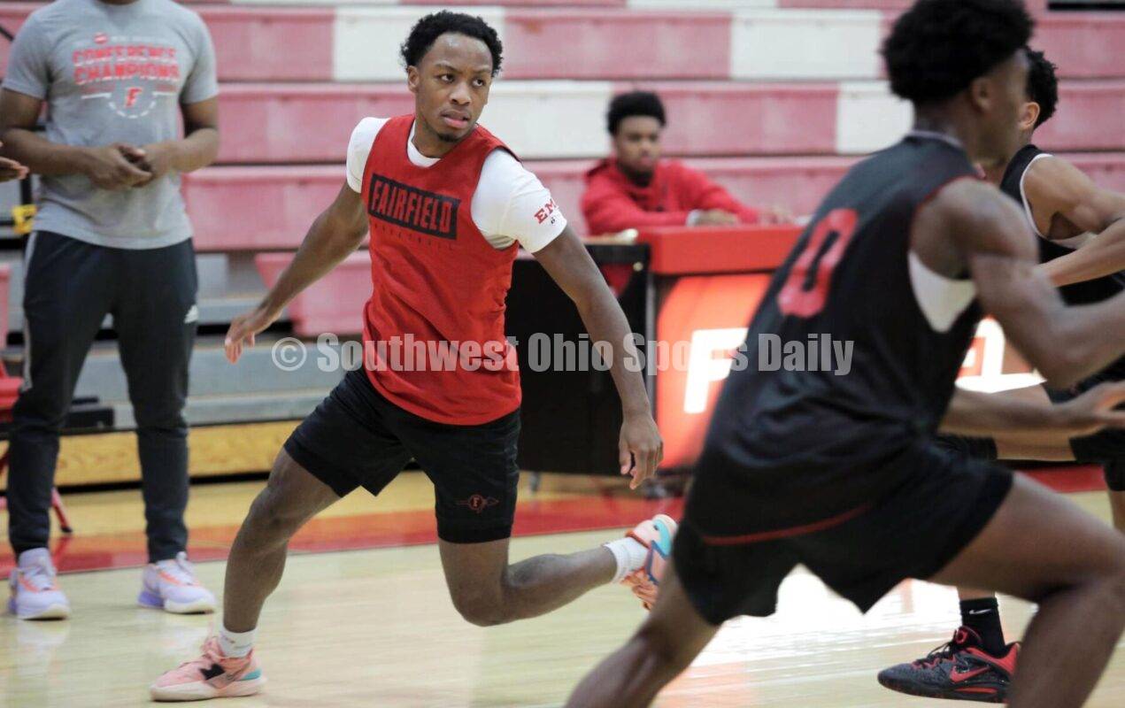 Fairfield High School's Deshawne Crim makes a move off the ball Nov. 23, 2022, during a boys basketball practice at the Fairfield Arena. RICK CASSANO/STAFF