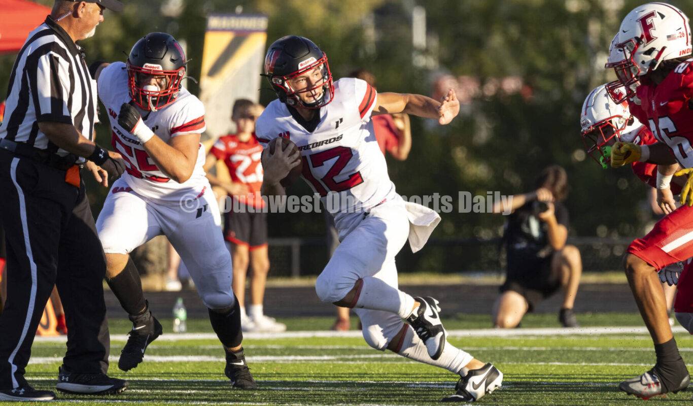 Lakota West High School quarterback Sam Wiles takes off with the ball Sept. 1, 2023, during a Greater Miami Conference football game against Fairfield at Fairfield Alumni Stadium. West won 33-0. WAYNE LITMER/CONTRIBUTOR