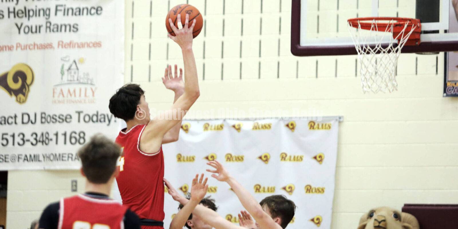 Fenwick High School's Bailey Temming eyes the basket Dec. 9, 2023, during a boys basketball game at Ross. Fenwick won 47-32. RICK CASSANO/STAFF