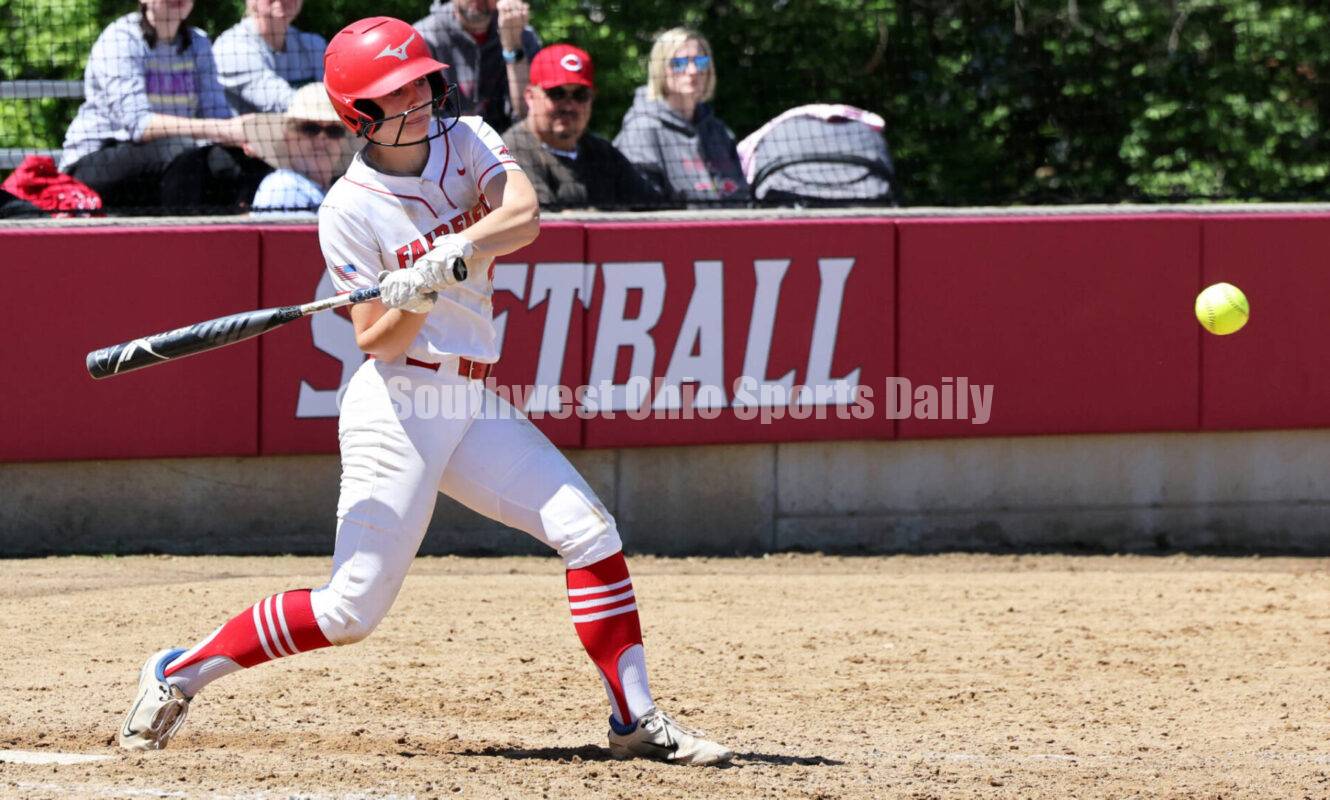 Fairfield High School's Jillian Huey is about to connect for a third-inning home run April 13, 2024, during a softball game against visiting Ross at Creekside Middle School. Fairfield won 12-2. RICK CASSANO/STAFF