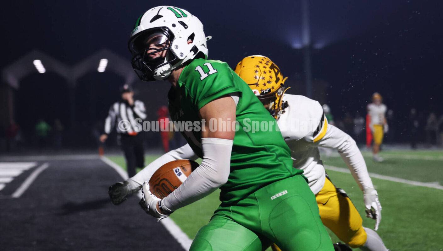 Badin High School's Hudson Heid makes his second touchdown reception of the night Nov. 7, 2025, during a Division III, Region 12 football playoff game against Kettering Alter at the Matandy SportsPlex in Hamilton. Badin won 35-28. RON ALVEY/CONTRIBUTOR
