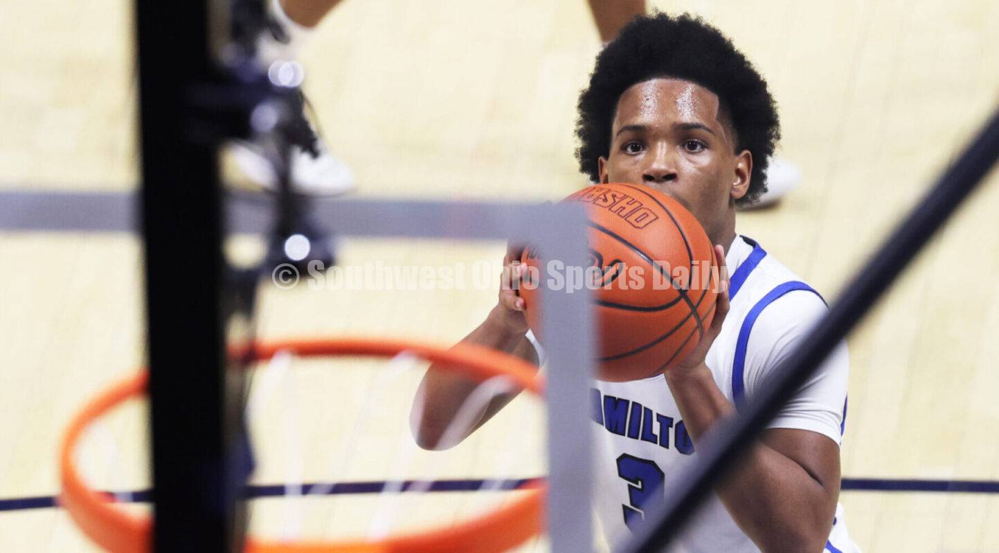 Hamilton High School's Jahari Gilbert lines up a free throw March 7, 2026, during a Division I district boys basketball final against Princeton at Xavier University's Cintas Center. Princeton won 64-49. RON ALVEY/CONTRIBUTOR