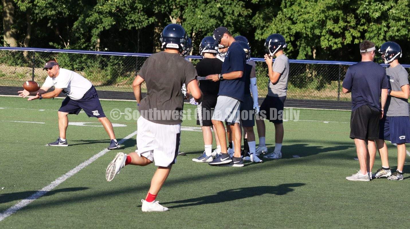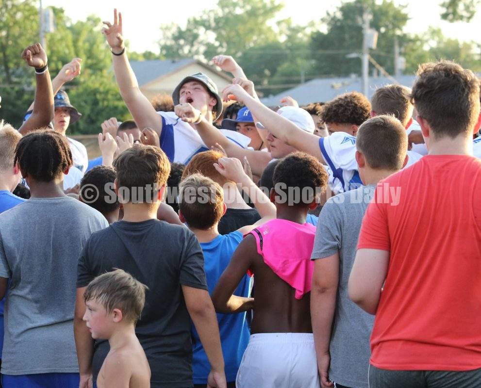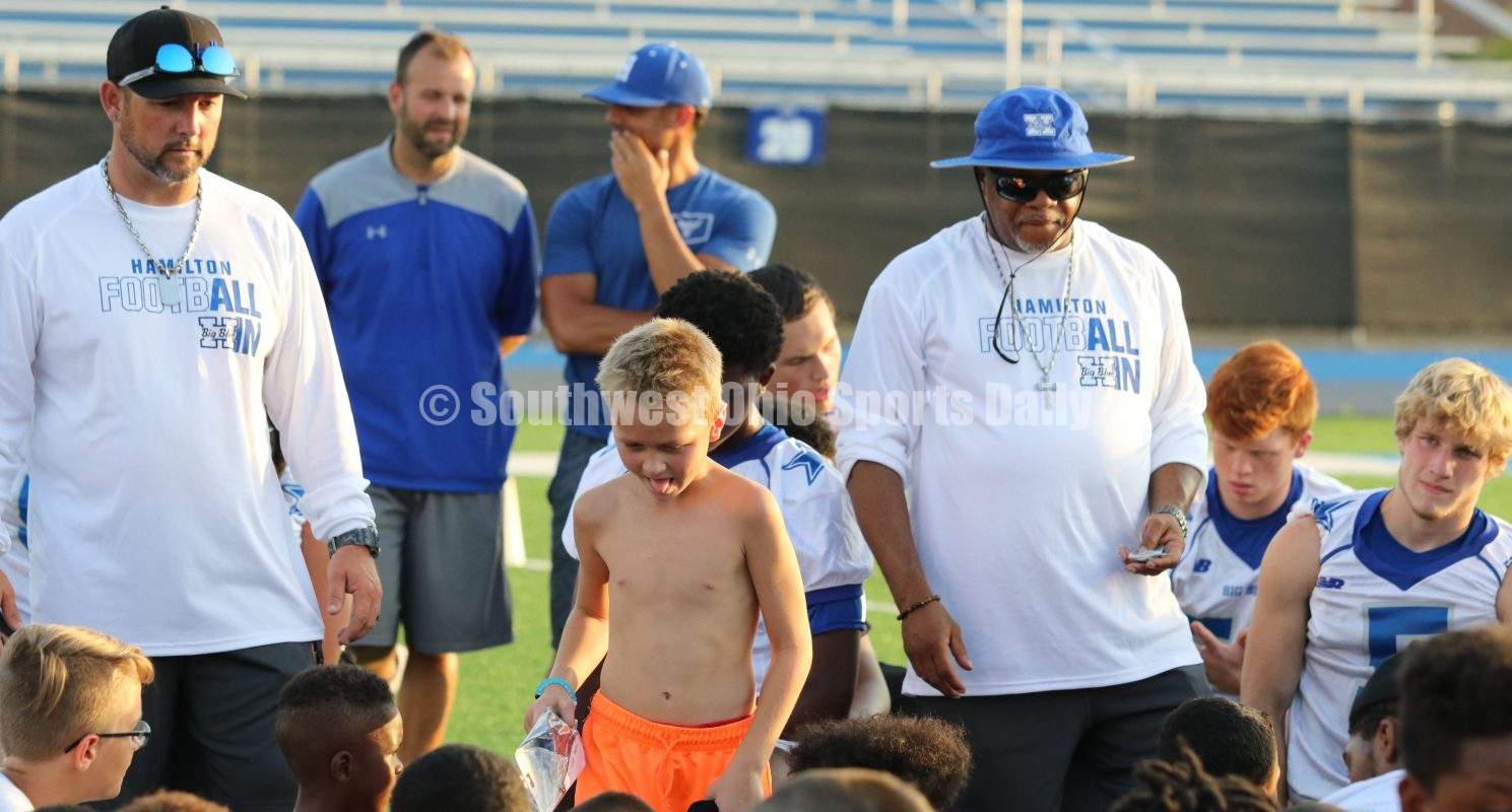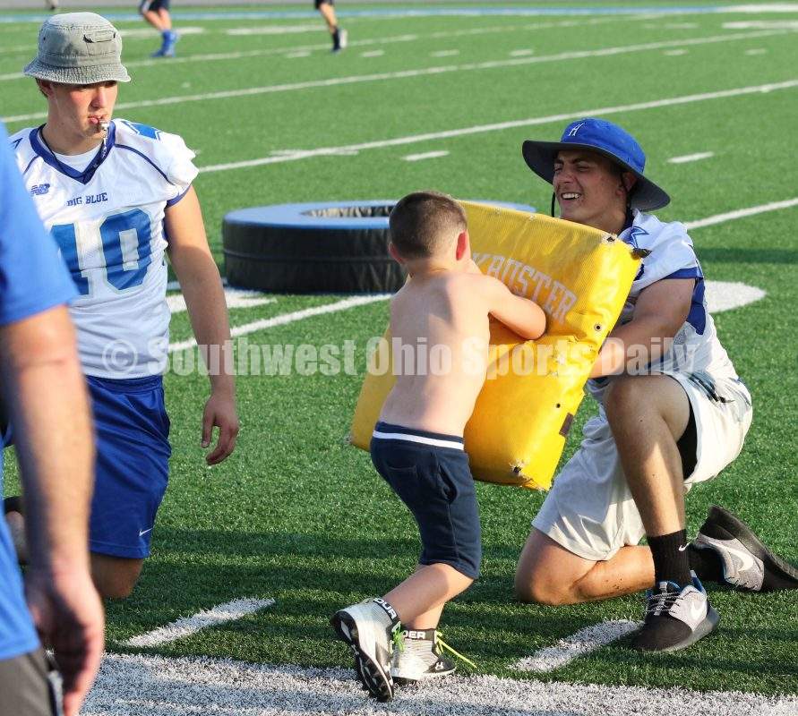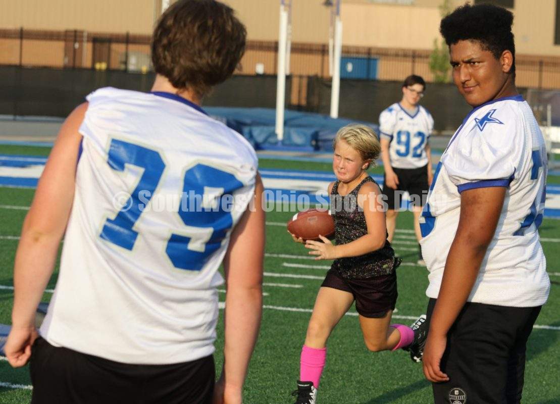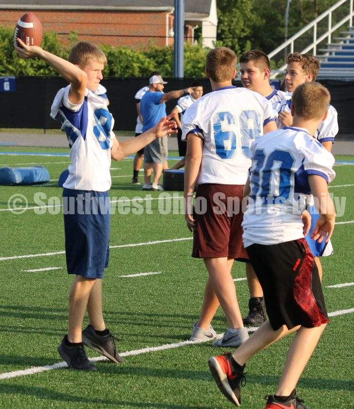 Hamilton High School had strong attendance for the first night of its youth football camp July 9, 2019, at Virgil Schwarm Stadium in Hamilton. RICK CASSANO/STAFF