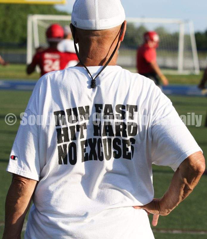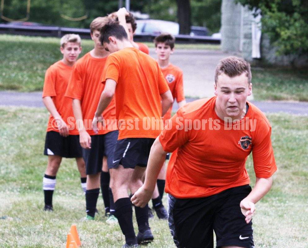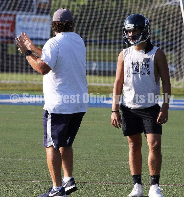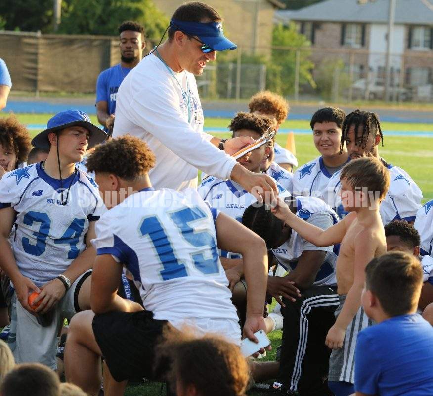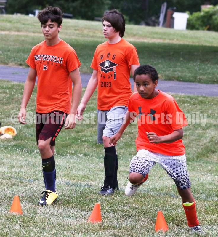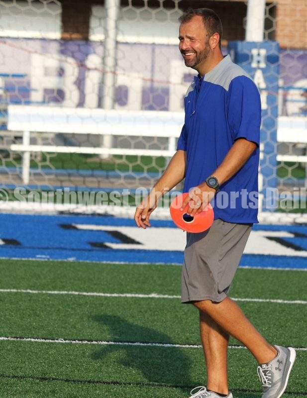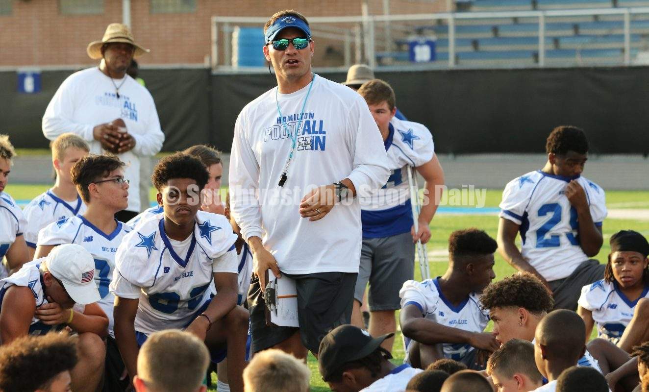 Hamilton High School had strong attendance for the first night of its youth football camp July 9, 2019, at Virgil Schwarm Stadium in Hamilton. RICK CASSANO/STAFF