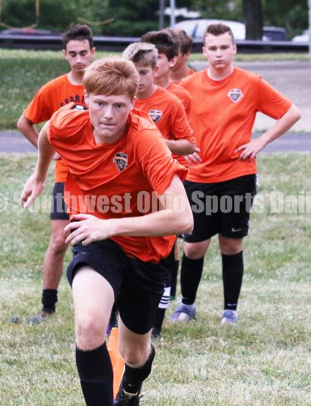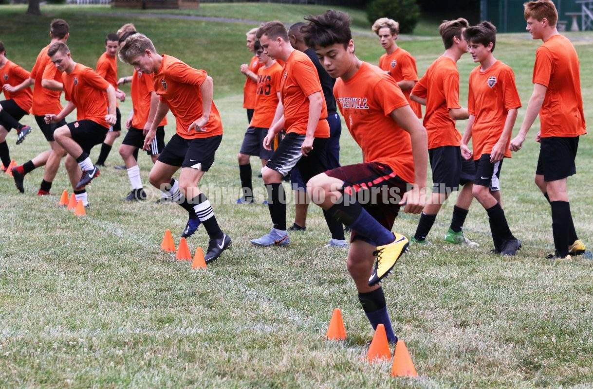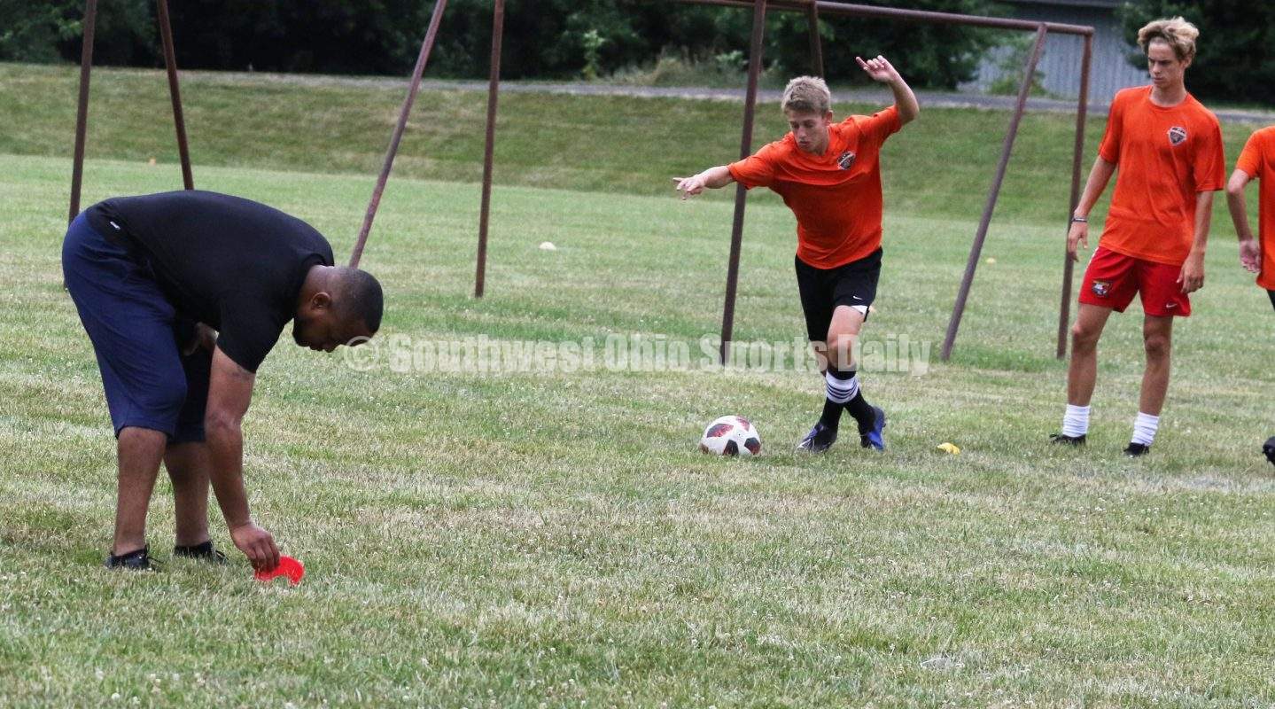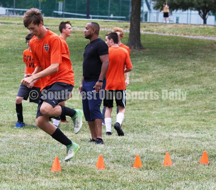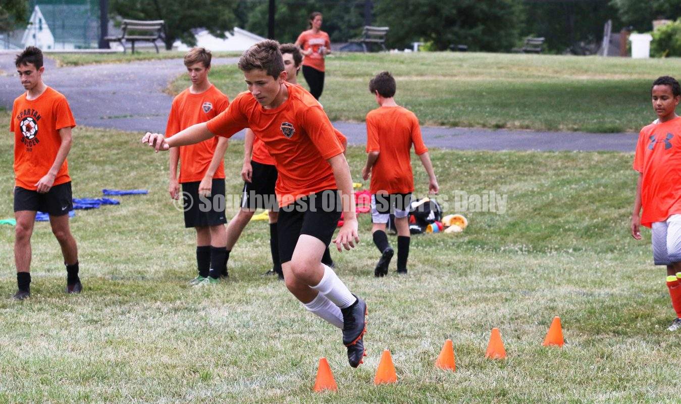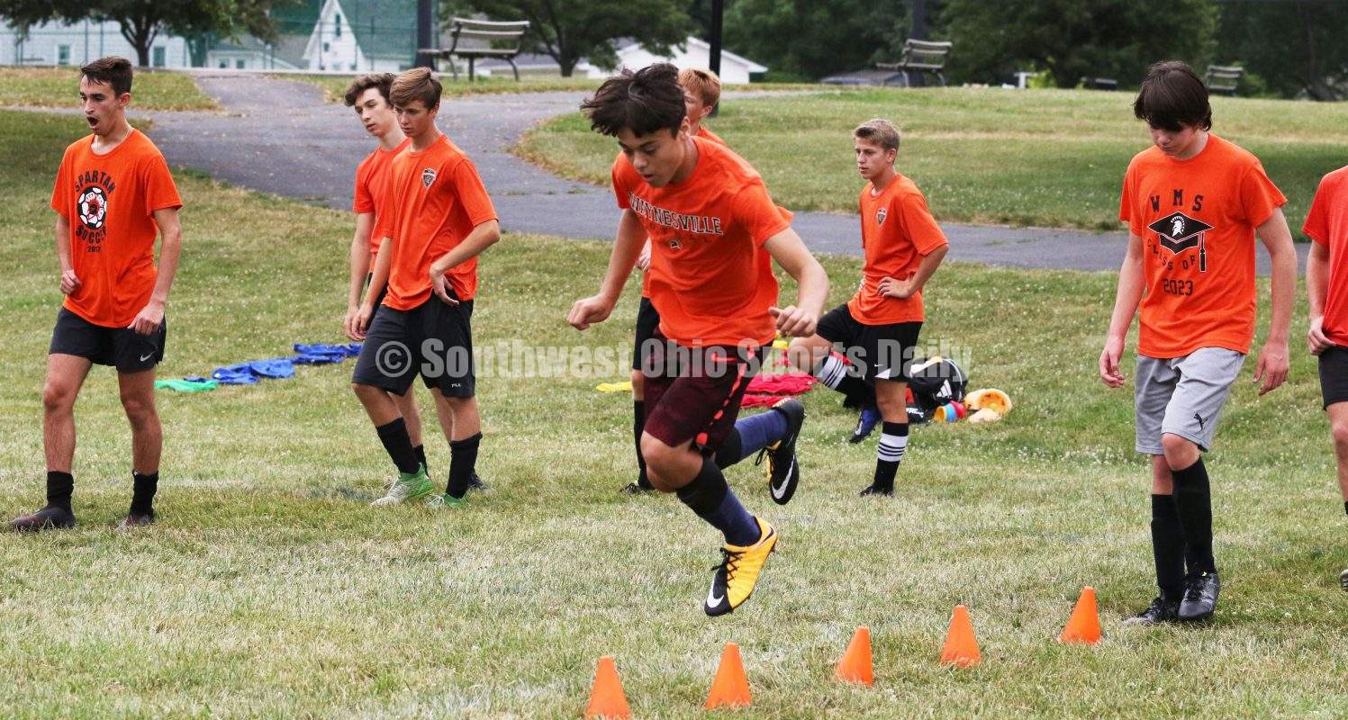 Hamilton High School had strong attendance for the first night of its youth football camp July 9, 2019, at Virgil Schwarm Stadium in Hamilton. RICK CASSANO/STAFF